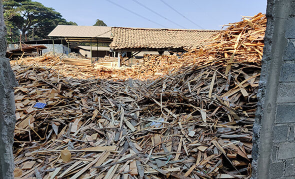 1.破碎工段:木片机首先将废旧的木材粉碎成3-5cm的木片