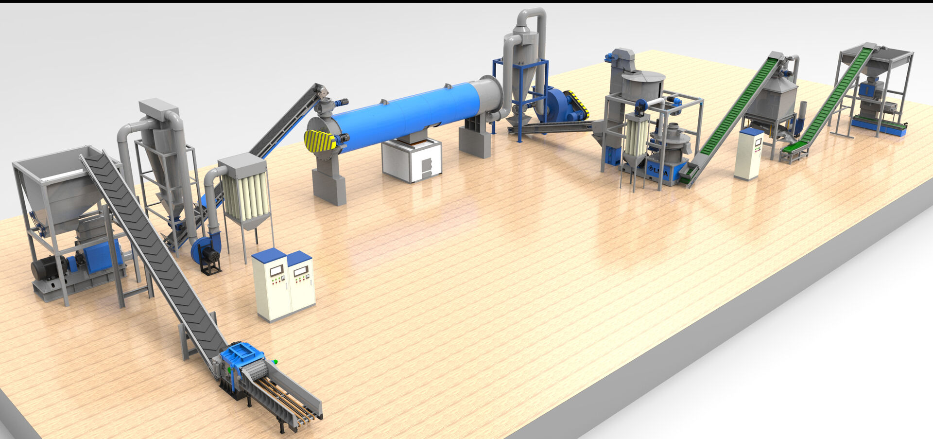 3.烘干工段:将木屑的含水份烘干到适合制粒的水份10-15%